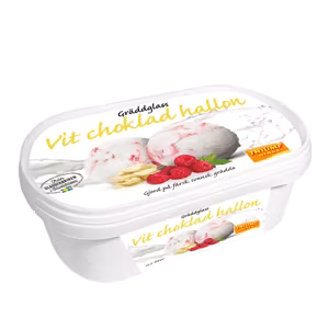 Skummjölk, grädde 20%, socker, glukos-fruktossirap, vasslepulver (av mjölk), fruktjuice från koncentrat (hallon, aronia), kakaosmör, invertsocker, vegetabiliskt emulgeringsmedel (mono- och diglycerider av fettsyror), stabiliseringsmedel (fruktkärnmjöl, guarkärnmjöl, karragenan, pektin), surhetsreglerande medel (citronsyra), salt, aromer.